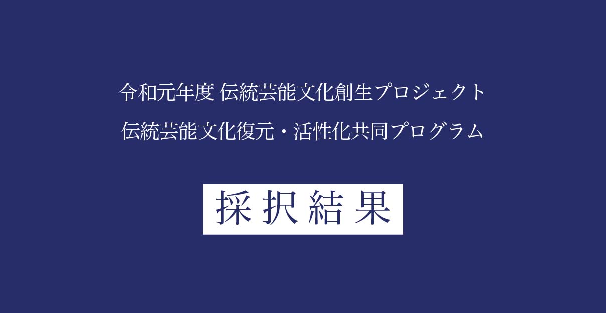 令和元年度 伝統芸能文化復元・活性化共同プログラム 採択結果